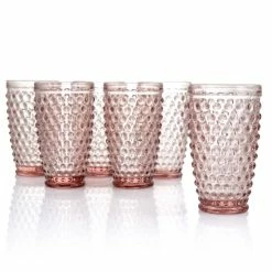 Wholesale ✨ Martha Stewart 6Pc 14.2oz Glass Hobnail Goblet Drinkware Set Blue – 3.5×3.5×6.75 🥰