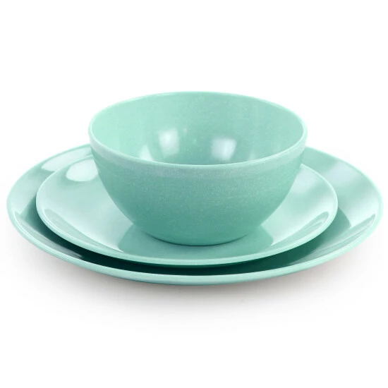 The Martha Stewart 12 Piece Melamine Dinnerware Set in Blue matches with any stylish table setting. This dinner plate set features a speckled blue color that perfect frames luxurious meals. The break resistant melamine makes the set ideal for outdoor eating or for use around kids. For long lasting care, the set is not microwave safe and is only top rack dishwasher safe. Enjoy eating at anytime in the be it breakfast, lunch or dinner.