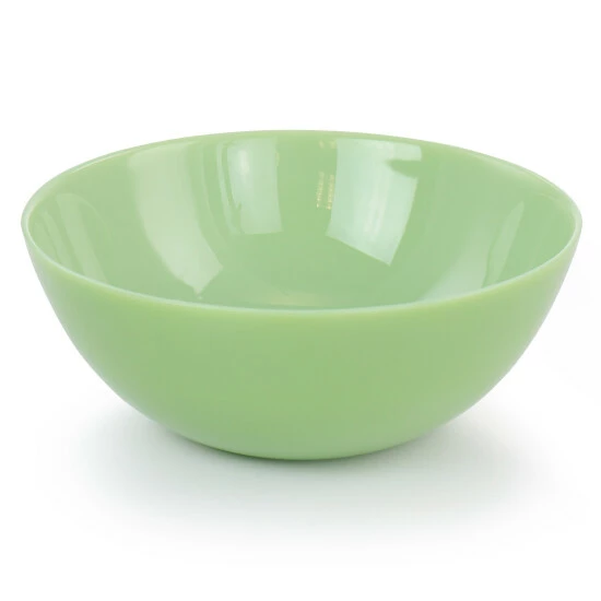 Use the Martha Stewart 2 Piece 10 Inch Jadeite Glass Serving Bowl Set in Jade Green to stun guest at your next potluck. The jadeite glass body features a nice milky jade green unlike any other serving piece. The large bowls allow for a generous 10 cup capacity for large portions of food, snacks, and fruits. Each piece is dishwasher safe but are not microwave safe or oven safe. Bowls are not suitable for boiling water.