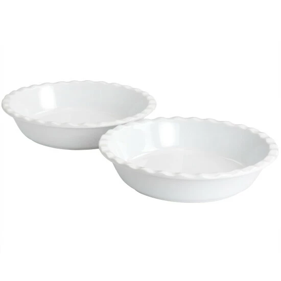 What’s a kitchen without a pie dish? Complete your collection in spectacular fashion with the Martha Stewart Stoneware Pie Dish Set. The elegant shape is not only pleasing to the eye and perfect for serving from oven to table but carefully constructed to heat your baking delicacies evenly for a crisp, golden crust and warm, moist center. Mac and cheese, rustic crumbles, and other oven-baked meals can also be made in these dishes, though nothing shines quite like a classic pie with crimped crusts (which the scalloped rims help ensure.) These two pie dishes are oven safe, dishwasher safe, and microwave safe … what’s not to love?