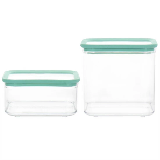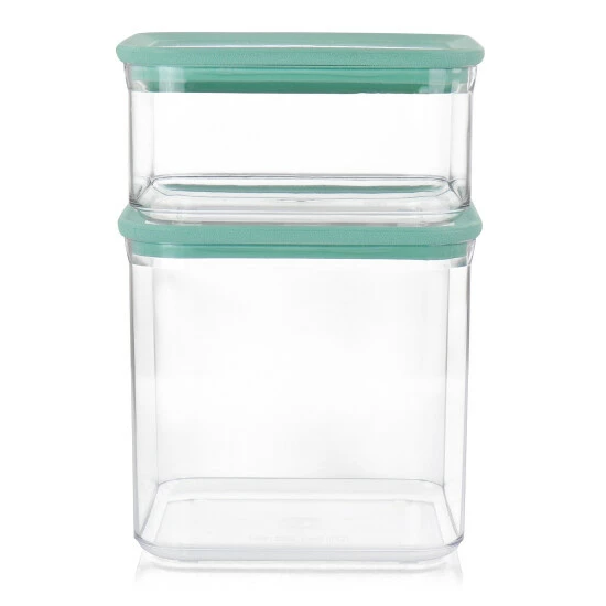 This stackable container set is perfect for both countertop storage and taking food with you on the go! This set comes with one 42oz container and one 93oz container. Each have light-seal lids and are made with a durable plastic that is top rack dishwasher safe for easy cleaning. These containers are perfect for dry foods such as pasta, pretzels, nuts, and more! Add some style to your countertop and save some space in your cabinets with these containers.