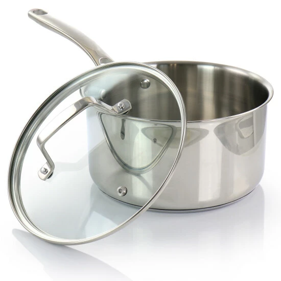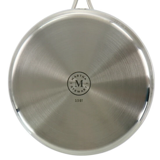 The Martha Stewart 3.5 Quart Stainless Steel Saucepan with Vented Glass Lid is a solid choice for any pro or home chef. Its’ 18/8 stainless steel body with aluminum base provides proper and even heating for efficient cooking. This cookware piece is oven and broiler safe up to 500F with the glass lid able to withstand up to 350F. Includes etched lines with in the pot for easy measuring. Dishwasher safe for easy and convenient cleaning but avoid bleach or citrus additives. Whip up savory sauces, mix decadent custards, or warm up cozy soups to enjoy in your home kitchen.