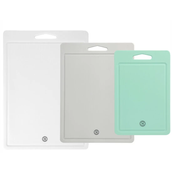Cutting boards are the place where ingredients start to become meals, and Martha Stewart has optimized this process with her set of three Prep Cutting Boards. The boards are color-coded so chefs can easily avoid cross-contamination when preparing meats or other raw ingredients. The boards are also made of BPA-free, heavy-duty plastic that isn’t absorbent or tough on blades. The boards measure 12″ by 8″, 16″ by 12″, and 18″ by 13″.