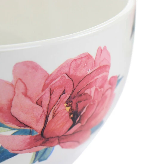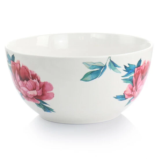 Decorate the kitchen space with the Martha Stewart 3 Piece Fine Ceramic Floral Bowl Set in White. Each bowl features a watercolor peony design through out their exteriors. Set includes a 2 quart, 3.3 quart and 5.4 quart bowl to suit any situation. The fine ceramic body is dishwasher safe and microwave safe for convenient everyday use. Every bowl is handy for mixing dough, serving snacks to guest or for holding fresh salads at the dinner table.