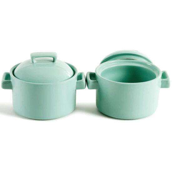 The Martha Stewart 6″ Mini Bakers are the perfect instruments for cooking individual portions of a comfort meal, or smaller sides for a large party. Lidded to seal in flavor and crafted for even heating and consistently crispy crusts, these small dishes deliver a big impact with their versatile offerings. Use them in the oven, microwave (not on the stovetop), and dishwasher without incurring any damage or wear.