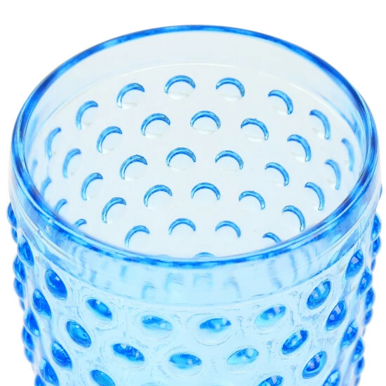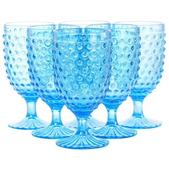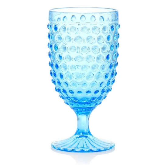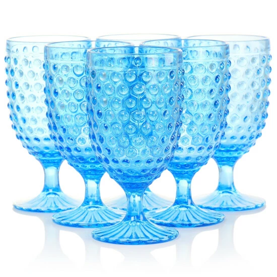 Decorate and dazzle dinner parties with the Martha Stewart 6 Piece 14.2 Ounce Clear Glass Hobnail Goblet Drinkware Set. Each cup features a stunning hobnail pattern that protrudes from the exterior of the glass. The thick glass bodies provide a durable and long lasting quality. The goblets are not microwave safe and are top rack dishwasher safe. Enjoy nice artisan Ales, tasty wines, or refresh yourself with a glass of water.Set: 6pc Goblet SetMaterial: GlassColor: Clear BlueNot Microwave SafeTop Rack Dishwasher SafeHobnail DesignSet Includes:Six 14.2oz GobletsPer Item Measurement:Goblet: 3.5″ diameter, 6.75″ height, 14.2oz capacity, 1.05lbs weight