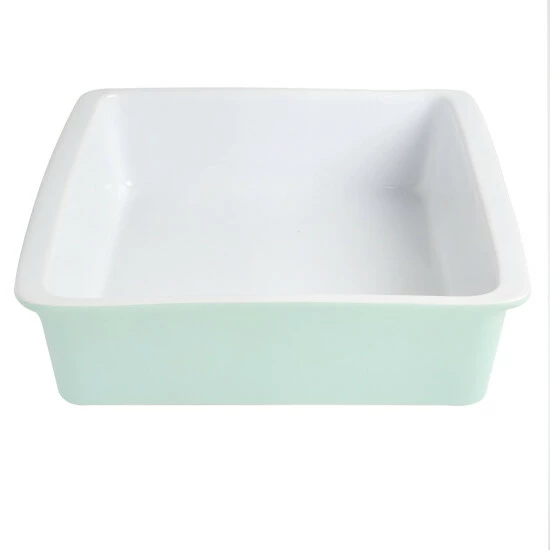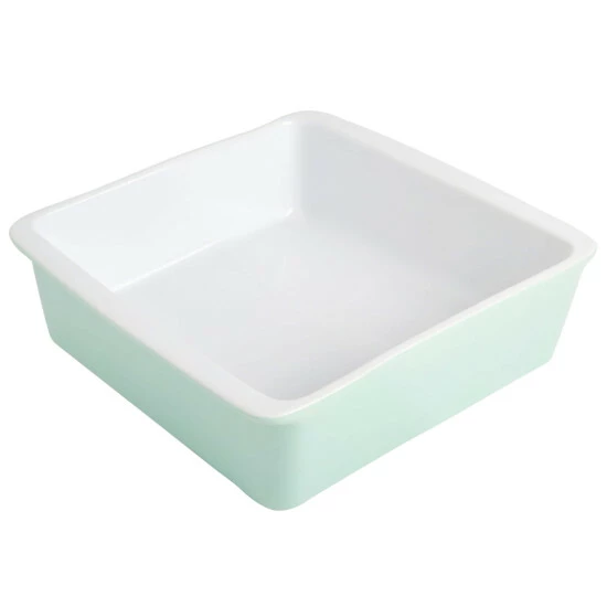 The Martha Stewart 8.25 Inch x 8 Inch Stoneware Baker in Mint is the perfect dish for presenting astounding dinners. Bring food straight from the kitchen oven to table. The bright colored stoneware body helps maintain heat while brightening the room with its vibrant color. The set is dishwasher safe and microwave safe for easy and convenient use. Serve guest tasty peach cobblers, warm quiche, or savory scalloped potatoes.
