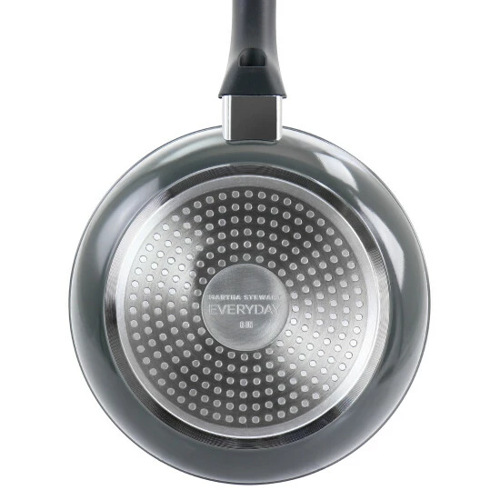Enjoy making all your favorite home cooked meals with the Martha Stewart Everyday 8 Inch Aluminum Nonstick Frying Pan in Sharkey Grey. Made of durable aluminum for even heat distribution. The nonstick coated interior allows for easy food release and cleaning. The sharkey grey colored exterior can match up with any home kitchen styling. Whip-up perfect omelettes, mix pasta into savory sauces, or sear a mixed array of veggies.