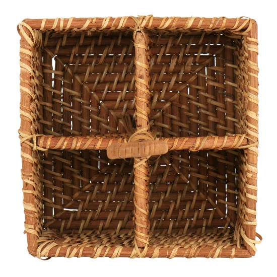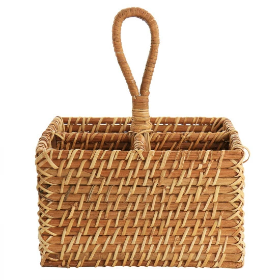 Bring your serving game to the next level with the Martha Stewart rattan serveware collection! This flatware caddy is constructed of 100% rattan material in a basket woven style. The lightweight design allows you to carry from place to place with ease. Featuring four sections and a middle carry handle, easily separate forks, knives, spoons, and napkins for your guests and let them help themselves. This caddy is perfect for both indoor and outdoor dining, wipe clean with damp cloth.