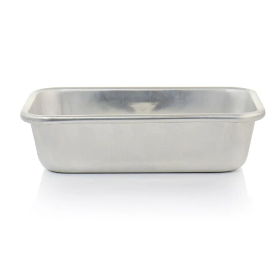 Martha Stewart 9 Inch Aluminum Rectangle Loaf Pan is a must have for at home bakers and cooks. This bread pan features a warp resistant, rust resistant aluminum body. Its silver exterior heats evenly, providing even browning for any dish. For proper care and longevity, it’s recommended to hand wash the baking pan. Warm up the oven and bake an assortment of goods from breads and cakes, to meat loafs and casseroles.