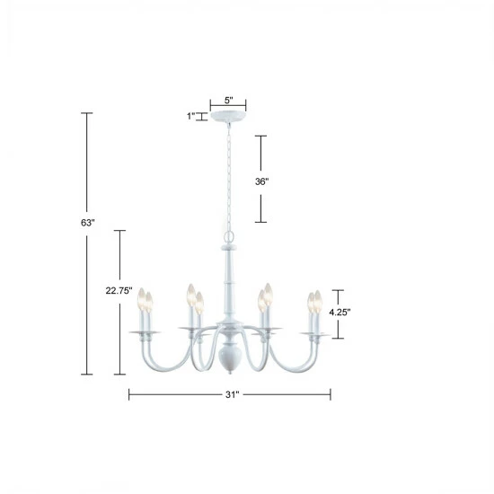 - Sophisticated 8 light chandelier shines equally well in dining room, kitchen, living room, entryway, or bedroom