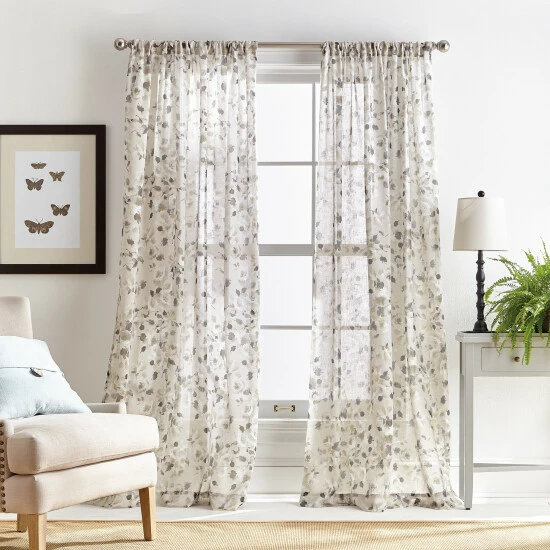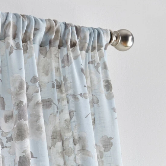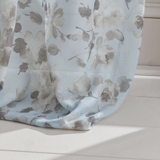 Rest & relaxation surround the Martha Stewart Annabelle Window Panel. The lightweight sheer features an all-over floral design that lets the warm embrace of sun shine through. Available in two colorways of aqua and linen, this panel delivers on subtle color and lots of cottage charm. Available in sizes 84-inch and 95-inch. Panels sold individually.ย