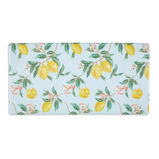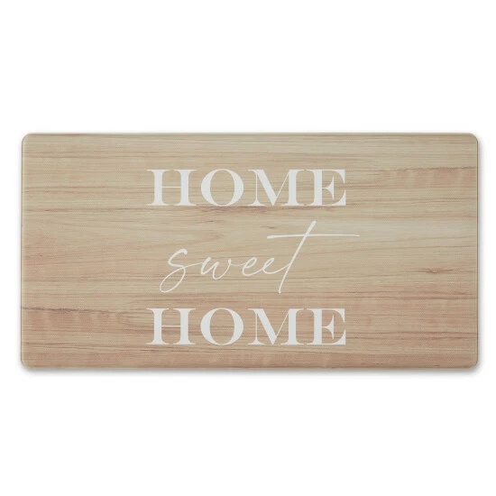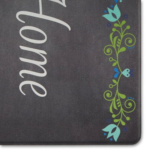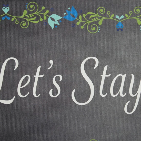 Give your feet the comfort they deserve by adding the Martha Stewart Bloomfield Baker Modern Farmhouse Kitchen Mat to your home. Featuring a design in black and white, this PVC mat combines durable, non-skid PVC foam backing with the phrase “Let’s Stay Home” to add function and style to your space. A beveled edge helps to reduce tripping. With an anti-fatigue feature, this mat helps to reduce pressure and discomfort brought about from standing on hard floors. Designed for indoor use only.