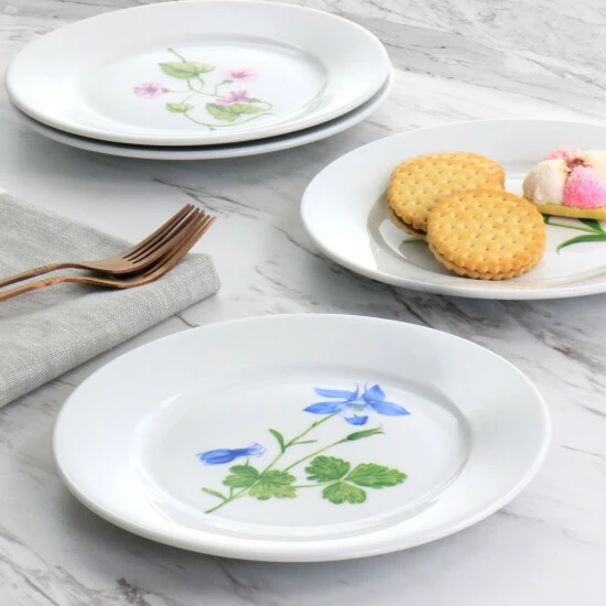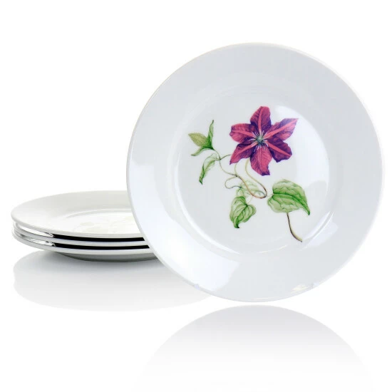 The Martha Stewart Botanical Garden 4 Piece 8 Inch Fine Ceramic Dessert Plates in White with Assorted Designs brightens up any living space. This table setting features a stunning illustration of flowers and vines at the center. The round plate shape perfectly frames any sweet decadent treats. Its fine ceramic construction is dishwasher safe and microwave safe for convenient daily use. Decorate the table with snacks, luxurious desserts, gifts or have the set hold onto regular household items.Set: 4 Pc Plate SetMaterial: Fine CeramicFinish: GlossyColor: WhiteShape: RoundAssorted Floral DesignDishwasher SafeMicrowave SafeSet Includes:Four 8″ PlatesPer Item Measurements:Plate: 8″ diameter, 0.75″ height, 0.85lbs weight
