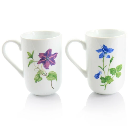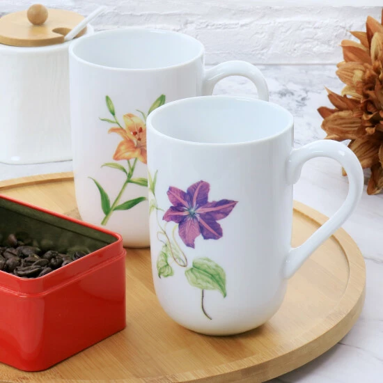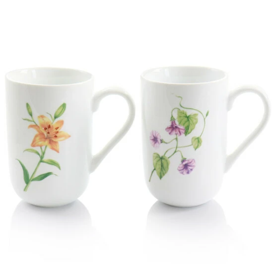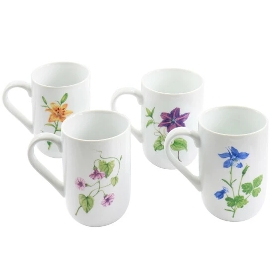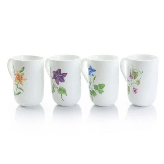 The Martha Stewart Botanical Garden 4 Piece 14.5 Ounce Fine Ceramic Assorted Mug Set in White elevates the daily dinning experience. With the set’s assorted floral illustrations, the table beams with life and color. The round bottom ceramic cups visually soften any harsh accents through out the home while maintaining a high quality build. This drinkware set is microwave safe for reheating drinks and dishwasher safe for easy cleaning. Enjoy fresh tranquil teas, a reinvigorating cup of coffee or relax with a cozy helping of hot chocolate.