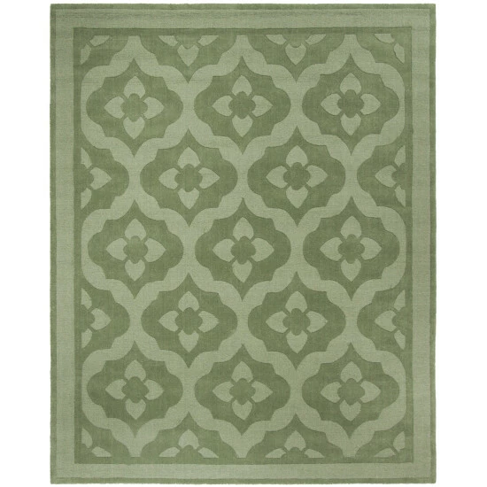 A vivacious geometric pattern adorns this lovely wool area rug, arriving in your choice of several rich, gorgeous, silky colors. Anchor your space’s entire aesthetic in modern, lively style.