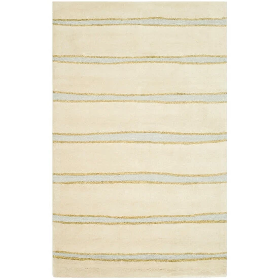 Diffuse bands in various colors ripple across a canvas of soft wool and viscose hand-tufted in India in this rug. The painterly stripe is deceptively complex, using colors to create a hand-drawn look that adds subtle pattern and color to rooms trending toward a modern aesthetic.