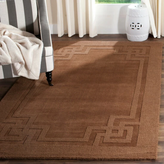 Bring subtle texture to your contemporary space with the Deco Frame rug from Safavieh. Hand-tufted from wool, the high-low pile is detailed with a geometric border. Choose from four colors and a range of size options to fit any room.