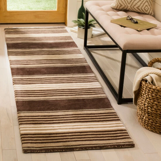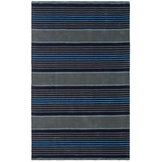 Blocks of multi-color stripes alternate with wide bands of solid color in Harmony Stripe, a pattern designed to complement today’s casual lifestyle. This quality area rug is hand-tufted in India of 100-percent wool for deep, rich color and texture.