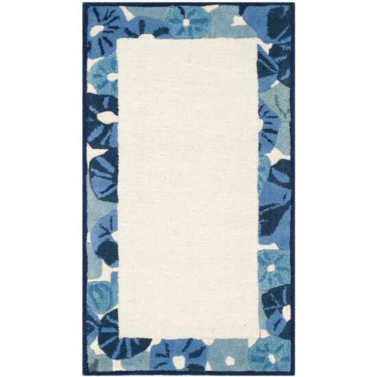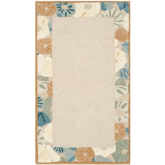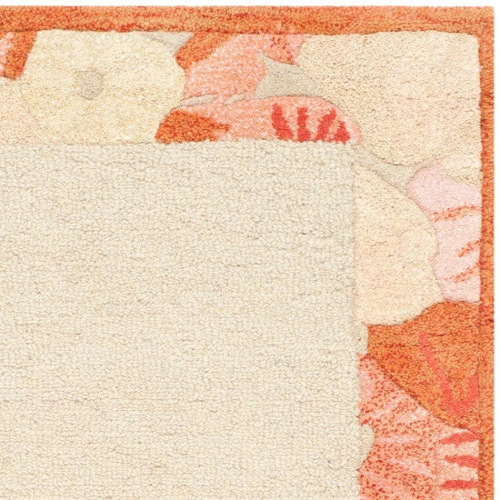 Poppy Border is a whimsical yet sophisticated hand-tufted rug, with a loop pile field framed with bands of cut-and-loop pile oriental poppies. Crafted in India of 100-percent wool, this rug is perfect for dining rooms and bedrooms, and coordinates with companion designs Poppy Field and Poppy Glossary.