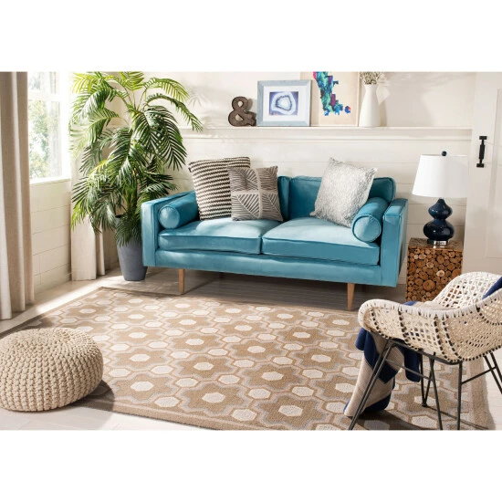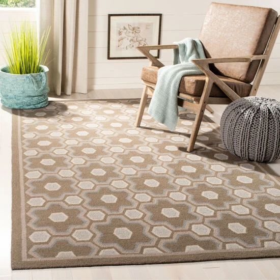 Puzzle, a stylized overall floral pattern in a lattice of hexagonal cells, will complement both rustic and urban interiors. Reminiscent of country quilt motifs but updated for contemporary homes, the design of this Hand-hooked rug is created by artisans in China using an extremely dense micro-hook that replicates 100-percent-Wilton wool carpets.