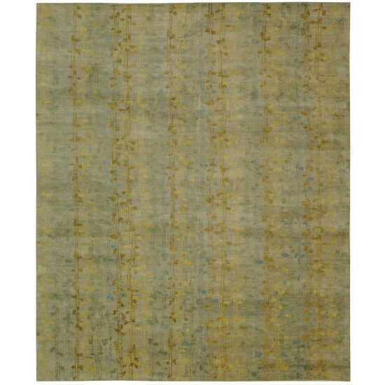 Softly shimmering vines in earthy tones form a pattern of subtle stripes that celebrate the beauty of nature. Elegant yet unexpected, the decidedly fresh Oushak-weave design of Tendrils is made in India using hand-carded wool and natural vegetable dyes.