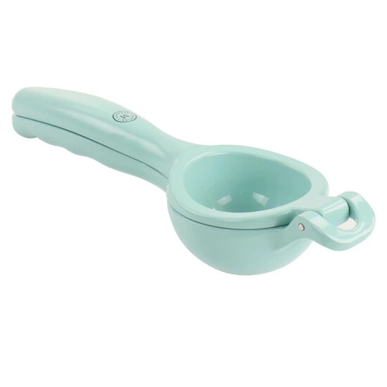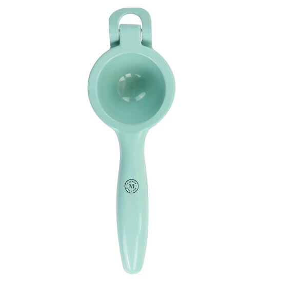 Squeeze all your favorite citrus fruits with the Martha Stewart citrus squeezer. Made of strong and durable aluminum that is built to last. The beautiful turquoise coating protects the aluminum base and prevents damage from acidic juices. Easily squeezes every last drop from lemons and other juices. Provides a very comfortable grip and is easy to use. Cleans easily and won’t react with acidic juices. Make this the perfect addition to your kitchen today.Citrus SqueezerMaterial: AluminumColor: TurquoiseCare: Hand wash only