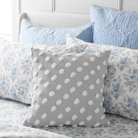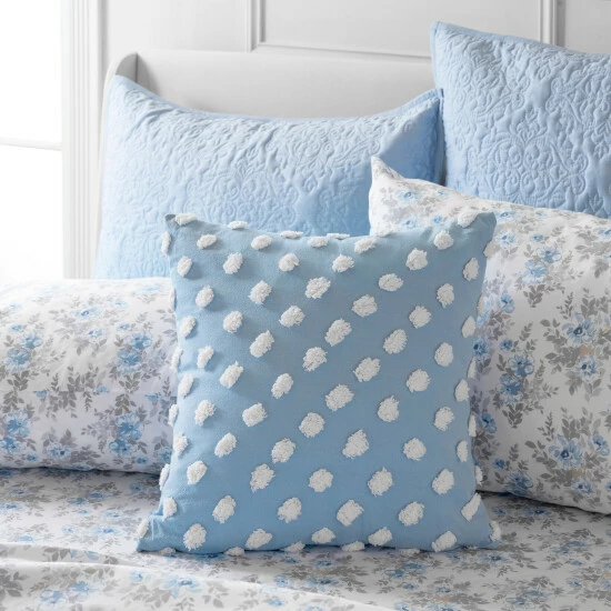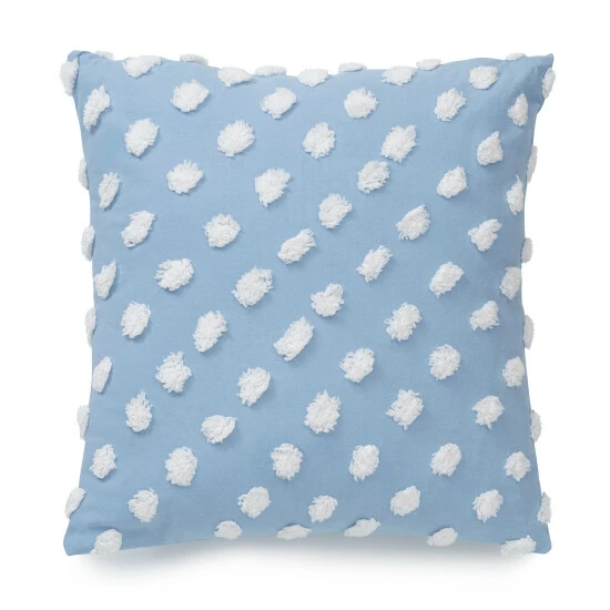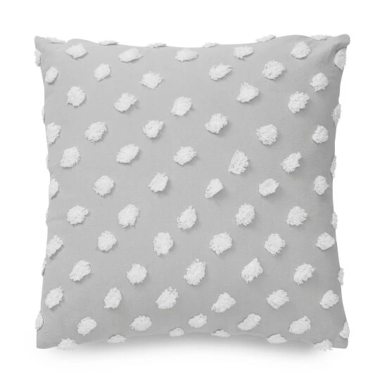 Simply a must have item for any space is the Chenille Dot decorative pillow by Martha Stewart. Designed and crafted in 100% cotton with knife edges on all sides for a clean finished look. Machine washable and includes a hidden zipper closure. Available in 3 colors with stylish tufted chenille dots.
