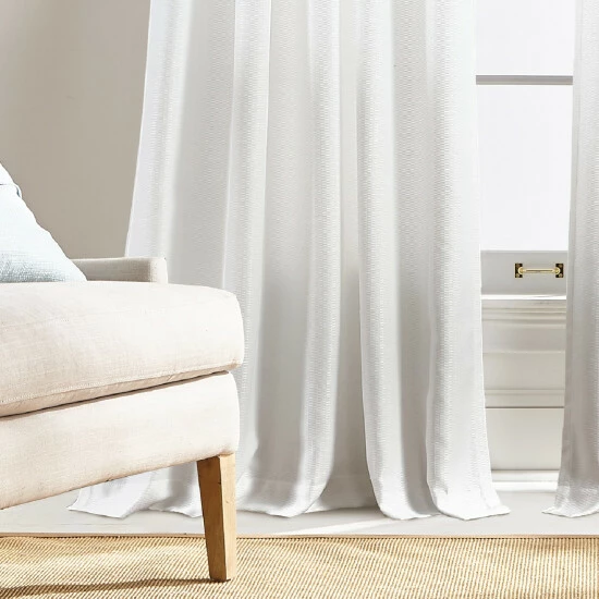 Stitched to perfection. The Martha Stewart Chenille Stitch Curtain panel pair opens up the room with a subtle pattern and texture. This sophisticated look fills up your space with interest and style. Reflecting rich hues of camel or white your space will feel brighter with either color. This style gently filters light and hang from the rod pocket for effortless window dressing. The panel pair is sold as a set of two.