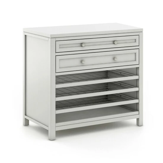 Comprised of unique storage solutions, functional work spaces and special places to curate and display children’s art, the Martha Stewart Crafting Kids’ Collection by Guidecraft inspires a child’s artistic expression. Innovative designs along with quality pieces, together establish a comprehensive, child-centered space to create using a variety of media. Constructed from a durable combination of easy-to-clean solid pine and engineered wood, the Kids’ Art Storage with Drying Racks – White provides an all-in-one storage space for works-in-progress and additional art supplies. Three removable racks and a removable drip pan make cleanup a breeze. Top drawer features multiple convenient dividers to limit clutter and provide additional organization in designated art spaces while a spacious second drawer leaves plenty of room for larger papers. Entire unit measures 33″L x 20″W x 31″H.