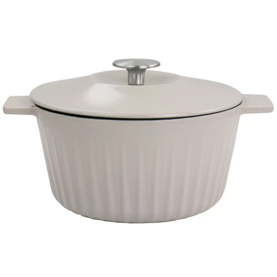 This small 3 quart enameled cast iron dutch oven is the perfect combination of versatile and stylish. Constructed with durable cast iron that distributes and retains heat evenly, helping you to cook and bake your favorite dishes with the best result. Enameled surface is nonstick and easy to clean and the integrated handles let you move from stove to oven to table with ease. Beautiful and simple embossed stripe on outside adds an element of design. This pot is perfect for cooking, baking, reheating, and serving. Oven safe up to 500 Degrees Fahrenheit Use pot holders whenever moving or lifting hot cookware. Compatible on all cooking surfaces including the oven, broiler, and on the barbecue. Not dishwasher safe, do not use metal utensils. Hand wash only.