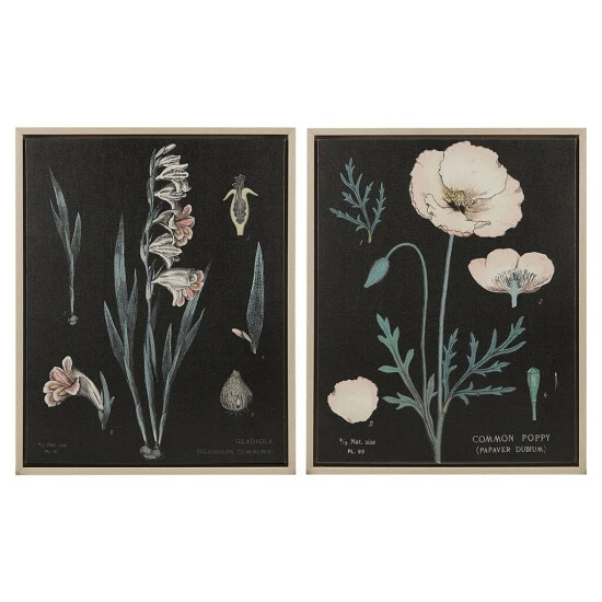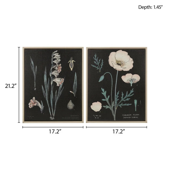 - Cottage Style Framed Botanical Printed Dark Linen Ground Canvas 2 Piece Wall Art Set