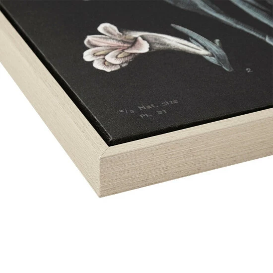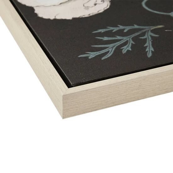 Bring Martha Stewart’s inspiring floral art to your home with the framed canvas prints of Eventide Flourish. A flower print, in soft white, blush, and green hues pops against each black canvas for a bold, modern twist on a cottage inspired look. Light wood tone frames add a natural touch to each flower wall art and the linen canvas provides a rich texture with an organic feel. Easily hang this framed wall art set using the attached sawtooth fixtures to give your living room or bedroom an artistic floral artwork display.ย