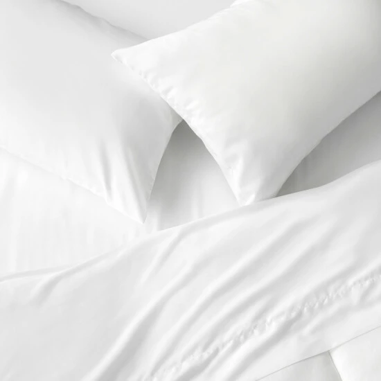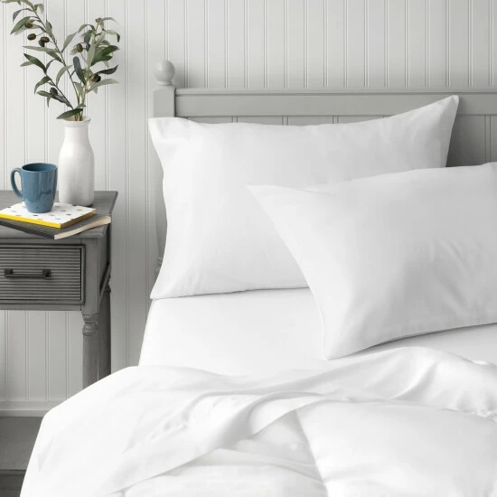 The Solid Sheet Set by Martha Stewart Everyday is the perfect way to turn your space into a cozy-refuge. This sheet set features a solid white background while a smooth 100% cotton sateen fabric provides an indulgently soft hand-feel with a light sheen for an added touch of detail.ย