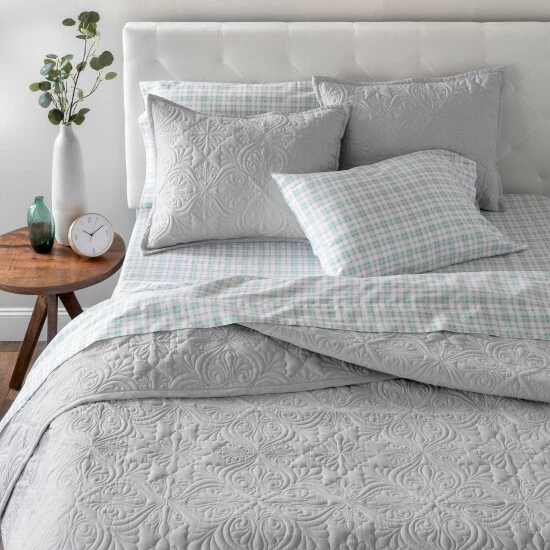 Transform your space into a sleep sanctuary with the Evelyn Quilt Set by Martha Stewart Everyday. This quilt set features a self-reversing traditional quilted pattern on the front and back and includes two matching shams to complete the look. This quilt is available in a 100% Microfiber fabric for an indulgently soft hand-feel and breathable weight for a full night’s sleep.