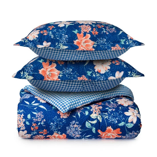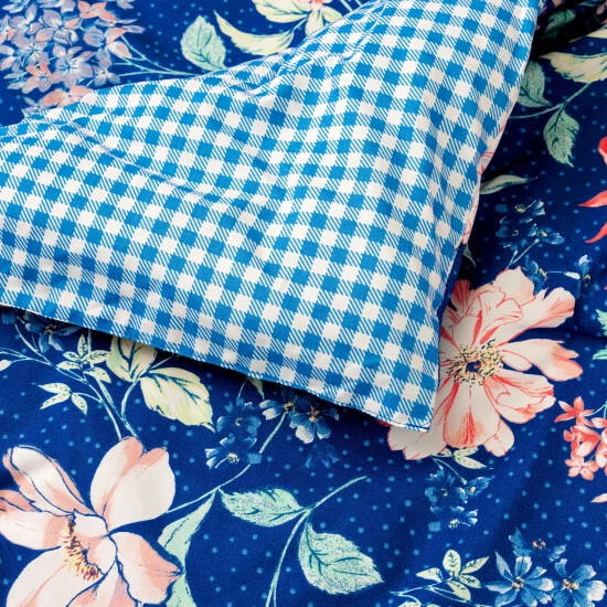 Blooming with lighthearted florals, the Polka Dot Floral Comforter Set by Martha Stewart Everyday was freshly picked just for you. This comforter set features a gorgeous, floral and polka dot print design and reverses to a classic gingham print for multiple ways to style. This comforter is available in a 100% Microfiber fabric for an indulgently soft hand-feel and includes two matching shams to complete the look.