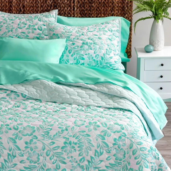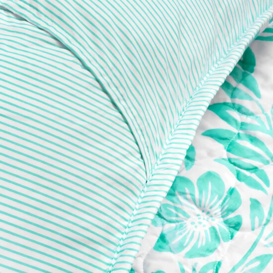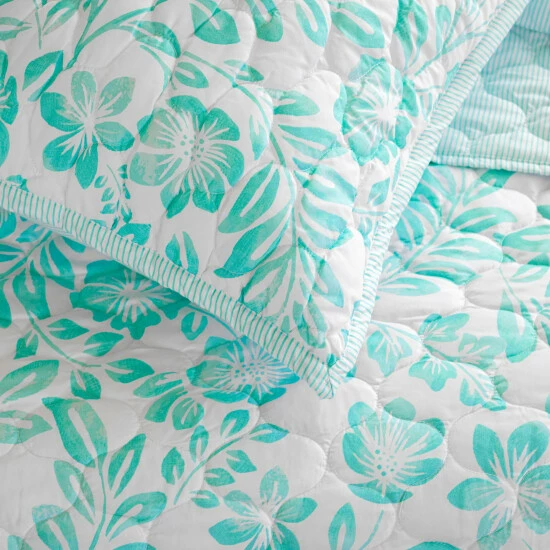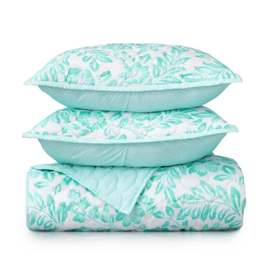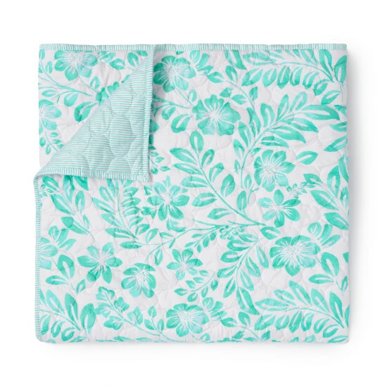 Sweet and timeless, the Frond Floral Quilt Set by Martha Stewart Everyday feels as good as it looks. This quilt set features an updated floral print design on the front and reverses to a small stripe print design on the back for multiple ways to style. This quilt is available in a 100% Microfiber fabric for an indulgently soft hand-feel and breathable weight for a full night’s sleep.