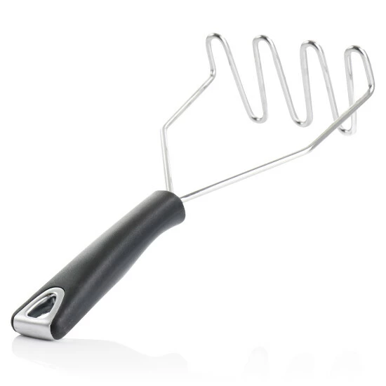 The Martha Stewart Everyday Stainless Steel Masher utensil is designed with an ergonomic handle for comfortable grip during extended use. Constructed with lightweight and durable brushed stainless steel that is dishwasher safe for long lasting use and easy clean up. Mash potatoes, bananas, beans, and other foods for cooking or baking!