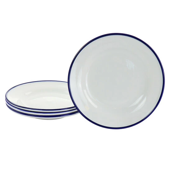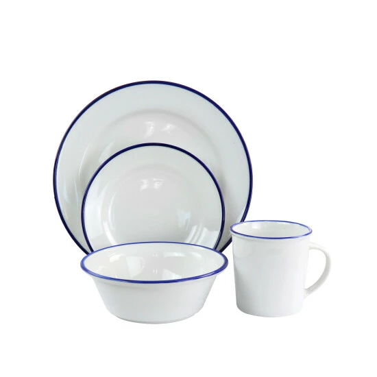 Bring the whole family together and serve up all your favorite meals with the Martha Stewart Fine Ceramic 16 piece Dinnerware Set in White. Your guests will love the dining experience. Set the mood the beautifully crafted ceramic material. These are set in white with blue edges bringing a very beautiful look to your dining table. The set will include dinner plates, salad plates, cereal bowls, and mugs. Add this to your kitchen collection.