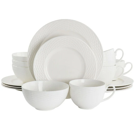 Formal or relaxed, your table setting sets the tone for your entire occasion. The simple yet elegant Fine Ceramic 16 Piece Textured Dinnerware set is designed with a unique rim to add an extra touch of style without over powering your favorite dishes! Constructed with fine ceramic that is dishwasher and microwave safe for long lasting and durable use. Put your unique style on display by mixing and matching Martha Stewart serveware and dinnerware to create tabletops that showcase your recipes and make dining more special.
