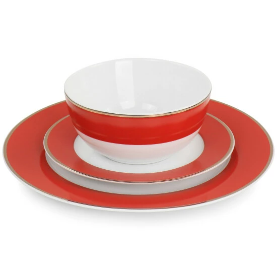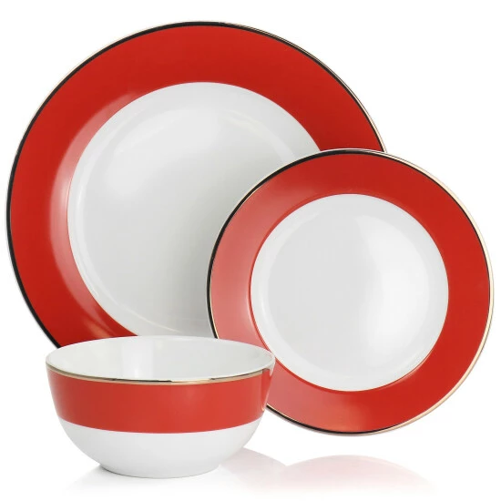 Make your dining experience special with this gold rimmed 12 piece dinnerware by Martha Stewart! Formal or relaxed, your table setting sets the tone for your entire occasion. Use this gold rimmed set to display your unique style and showcase your favorite dishes. Designed with a colored edge and gold plated rim, this set adds some color and class to any meal. It comes with service for four people, including dinner plates, salad plates, and cereal bowls. Fine ceramic construction is lightweight and durable, hand wash only.