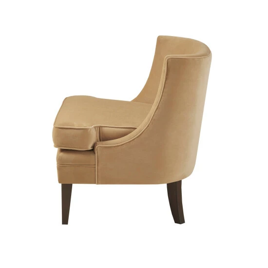 Add An Eye-Catching Modern Update To Your Home Decor With The Martha Stewart Halleck Accent Chair. This Accent Chair Is Upholstered In A Rich Gold Fabric And Features A Low, Button-Tufted Back To Complete The Contemporary Design. The Solid Wood Legs Showcase A Dark Morocco Finish That Contrasts Beautifully With The Upholstery. With Its Incredibly Soft Removable Cushion, This Accent Chair Provides The Perfect Blend Of Style And Comfort To Elevate Your Living Room Decor. Leg Assembly Is Required And No Tools Are Needed.