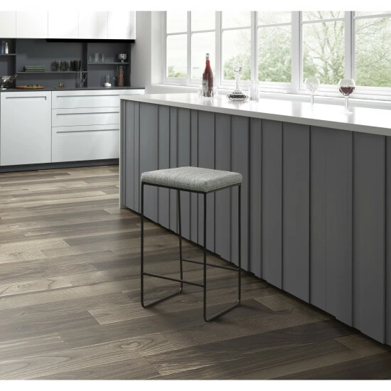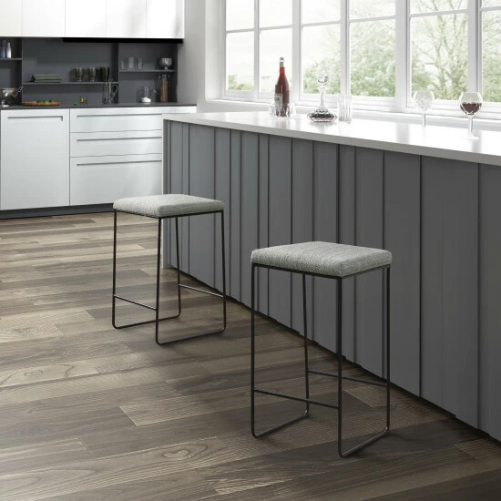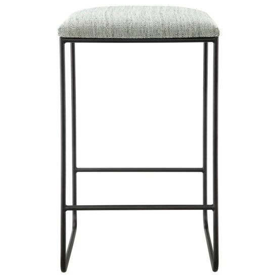 The Martha Stewart Hastings Counter Stool offers a sleek and slender update to your kitchen decor. This counter stool features a heathered grey, faux linen upholstered seat, for a rich textured look. The slender metal base showcases a matte black finish to complement the upholstery completing the contemporary design. Flaunting a simple style, this counter stool adds a modern flair to your dining decor. No assembly required.
