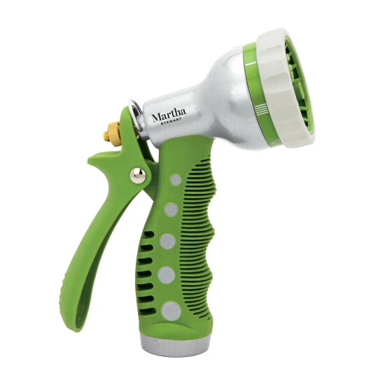 Water your way with Martha Stewart’s 2-Pack High Impact-Resistant Hose Nozzles. Keep your lawn lush and your grass green with this durable duo of nozzles. Choose from 7 adjustable spray patterns — center, jet, mist, cone, flat, shower, and soaker — and 3 classic spray patterns — mist, cone, and jet. Adjust water flow on both nozzles with the flow control knob and set your perfect pressure to suit your lawn and garden. Then, lock-in your spray adjustment settings with the trigger lock feature — no more constant squeezing; just continuous, even water flow. Plus, the heavy-duty metal construction and comfortable, ergonomic grip is built for reliable, continuous use — season after season. Make your garden the envy of the neighborhood with Martha Stewart’s exclusive watering collection.