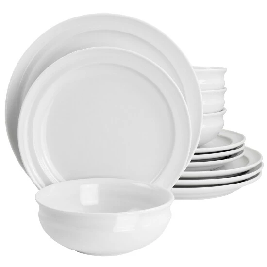 Setting the table should feel like the culmination of a dining experience carefully planned and lovingly created, and with this classic, elegant white Dinnerware Set, that’s exactly what happens. The Hillington collection provides the perfect setting for any type of entree, side, or dessert, giving your homecooking the polished platform it deserves. The Set is comprised of four 10.8″ dinner plates, four 9″ dessert plates, and four 6.5″ cereal bowls, each made from fine ceramic with a high-gloss finish.Material: Fine CeramicHigh gloss finishDishwasher and microwave safeDurable constructionSet includes:Four 10.8in dinner platesFour 9in dessert platesFour 6.5in cereal bowlsPer Item Measurements:Dinner plates- 10.8in diameter, 1.1in height, 2.35lb weightDessert plates- 9in diameter, 0.9in height, 1.35lb weightCereal bowls- 6.5in diameter, 2.5in height, 1.1lb weight, 20oz capacity