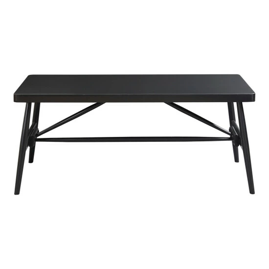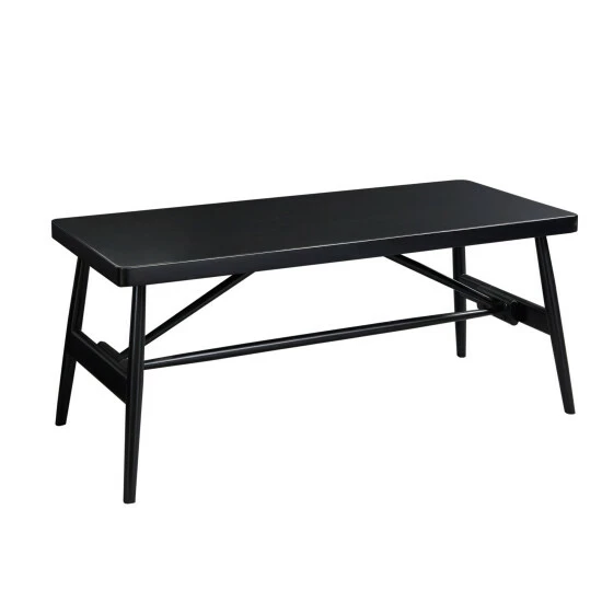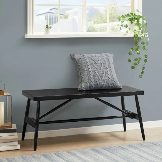Update your home decor with the modern style of the Martha Stewart Lachlan Accent Bench. This black accent bench is made from MDF with a wood veneer top and features solid wood turned legs to create a bold contemporary look. Flaunting a sleek design, this accent bench adds a chic touch to your living room or bedroom. Assembly is required and tools are included.ย