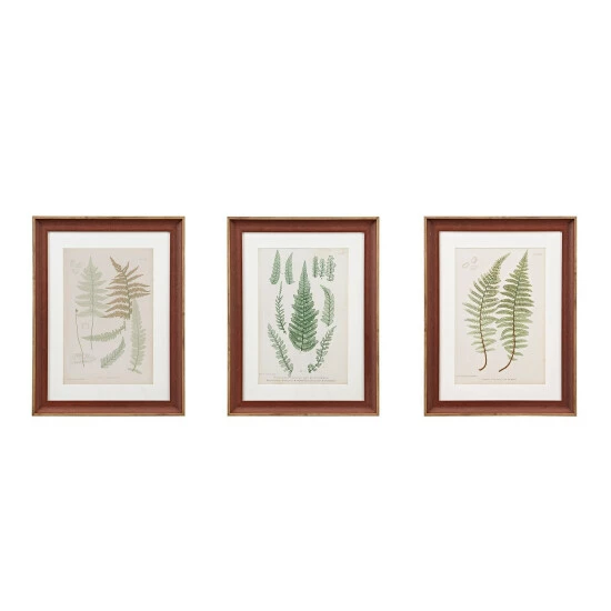Ornament your walls with botanical and floral elegance with this three-piece wall art set. Featuring graphic images of fern leaves and branches, this set of wall art showcases your love for nature and enhances your decor. Mounted in a wooden frame with a glass top, this art set hangs easy and displays well.