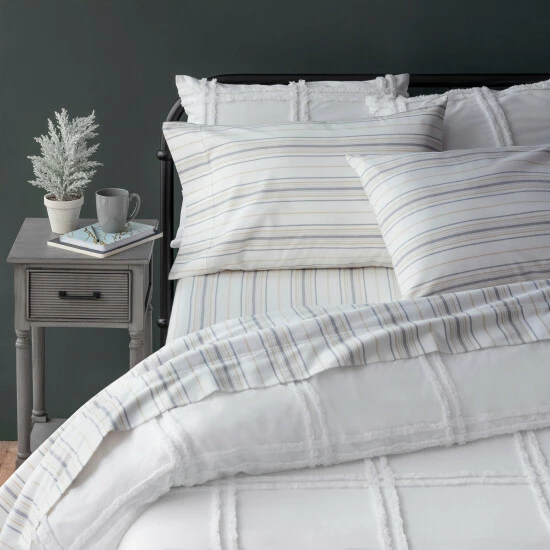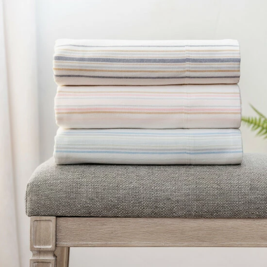 Crafted from luxurious Portuguese Flannel, the Lodge Stripe Flannel Sheet Set features 100% cotton velvet flannel with a 180 thread-count that instantly transforms your bedroom into a cozy-refuge. A breeze to launder, this flannel is resistant against pilling and gets softer after each wash while remaining durable and not thinning out over time. This sheet set features a sweet and classic stripe print that evokes a cheerful spirit immediately upon cuddling up for a good night’s sleep.