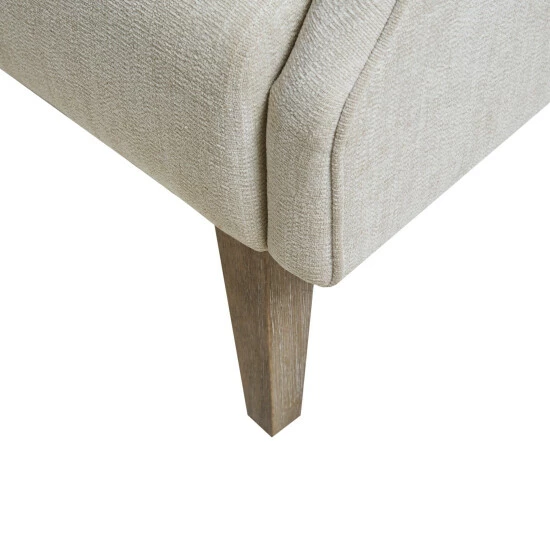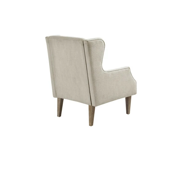 The Martha Stewart Malcolm Wing Back Accent Chair offers a simple and sophisticated update to your living room space. This upholstered accent chair features a wing style back and stylish recessed style arms to create an elegant silhouette. The wide and comfortable seat and solid wood tapered legs provide a relaxing and supportive base that’s perfect for any living room decor. Leg assembly is required and a tool is included.