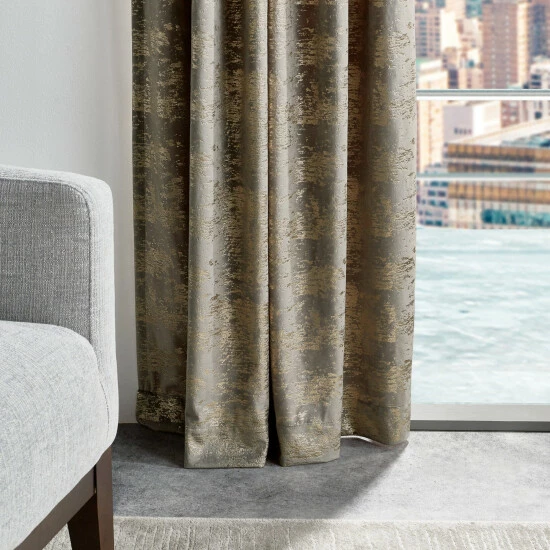 Featuring a delicate metallic all over pattern set to an alluring gray or blush velvet, the Monroe Metallic window panels are the easy, effortless and instantly sophisticated style edit to any room. Sets are available in two lengths 84 inches and 95 inches and two colors (Grey and Blush). ย